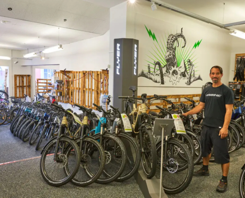 Bernhard Valant vom E-Bock in Mürzzuschlag informiert über das umfangreiche Angebot: „Unsere Fachgebiete sind der Verkauf, das Service und der Verleih von E-Bikes. Verkauft wird natürlich an Privatkunden, im Moment boomt aber der Leasingbereich für Firmen. Das Leasing eines Dienstrades ist im Prinzip nichts anderes als bei einem Firmenwagen. Seit dem letzten Jahr nutzen das im Mürztal immer mehr Unternehmen für ihre Mitarbeiter. Die Dienstradpakete bieten natürlich vollen Versicherungsschutz, Servicekosten werden vom Versicherer übernommen und durch die fixe Leasingrate sind die Kosten gut planbar.